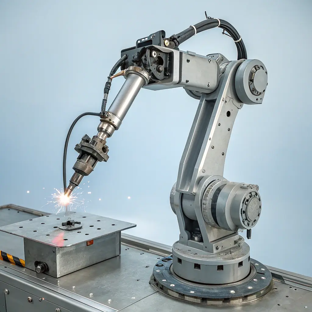 The SteelForgeTech CompactWeld 150 is a compact robotic welding unit perfect for small workshops and localized fabrication tasks. It combines precision robotics with user-friendly controls, allowing for efficient and accurate welds in tight spaces. Despite its size, it offers customizable parameters and safety features to meet diverse project needs. This system is ideal for businesses seeking reliable automation without large footprint requirements.